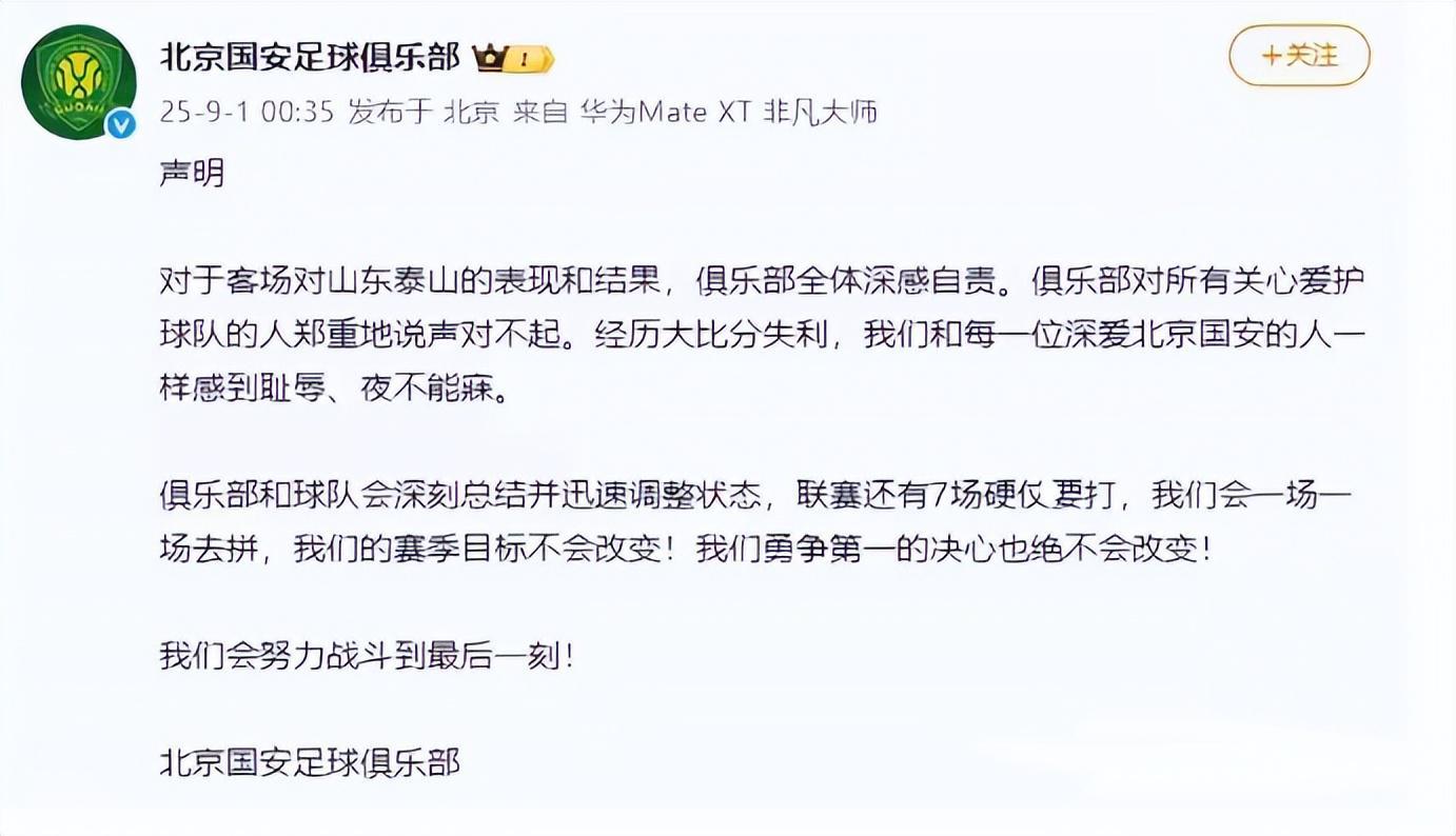 在客场中,输给山东泰山,直接让国安成了笑话。